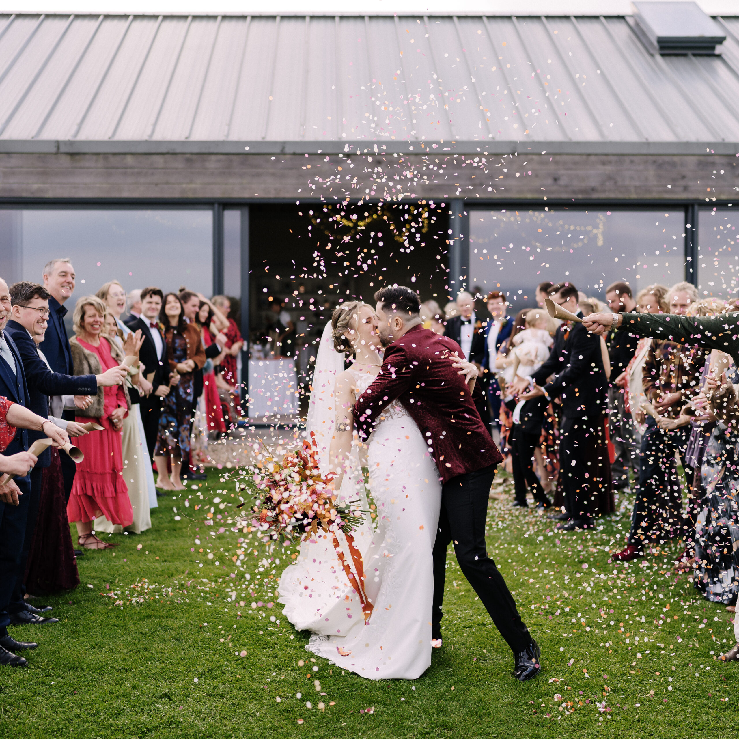 Couples have 48-hour exclusive use, including access the day before to style the space and settle in without rush. Choose to say your vows inside the barn or outdoors at our purpose-built pergola, then host anything from a refined seated wedding breakfast to a more informal, festival-style reception that spills onto the grounds.